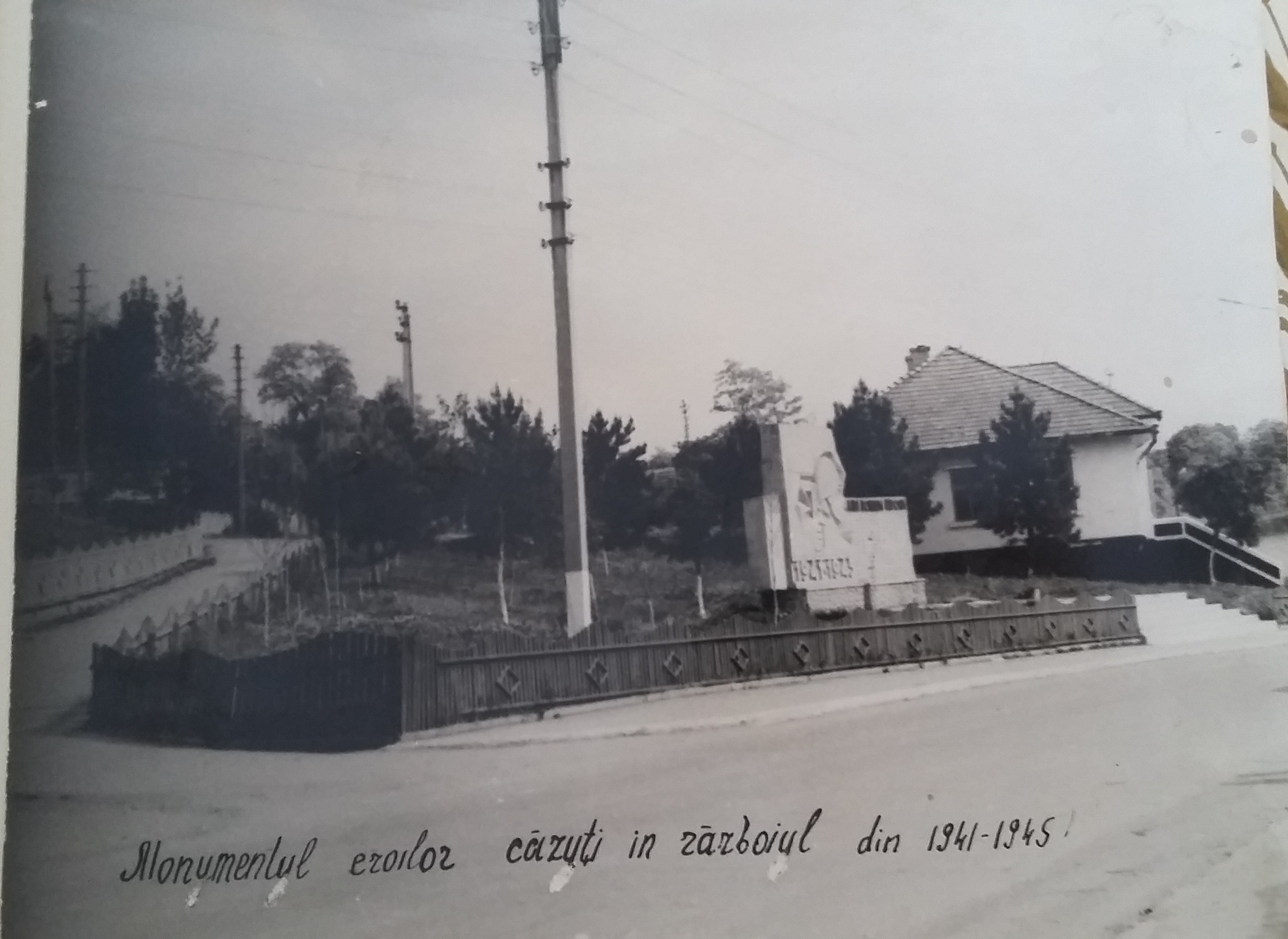 În imagine este reprezentat monumentul soldaților din satul Iurceni căzuți în al doilea război mondial. În spatele memorialului se vede frontal Școala Românească, pe atunci fiind încă în stare tehnică bună. Fotografia a fost realizată în perioada sovietică și se păstrează în Muzeul de Istorie și Etnografie din localitatea Iurceni.